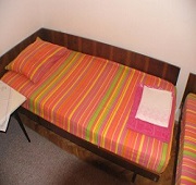 Roze dvokrevetna soba se nalazi u prizenmlju okrenuta je prema ulici, zasebni ležajevi. Kupatilo deli sa jos jednom sobom, mogucnost korišćenja unutrašnje i spoljašnje kuhinje.